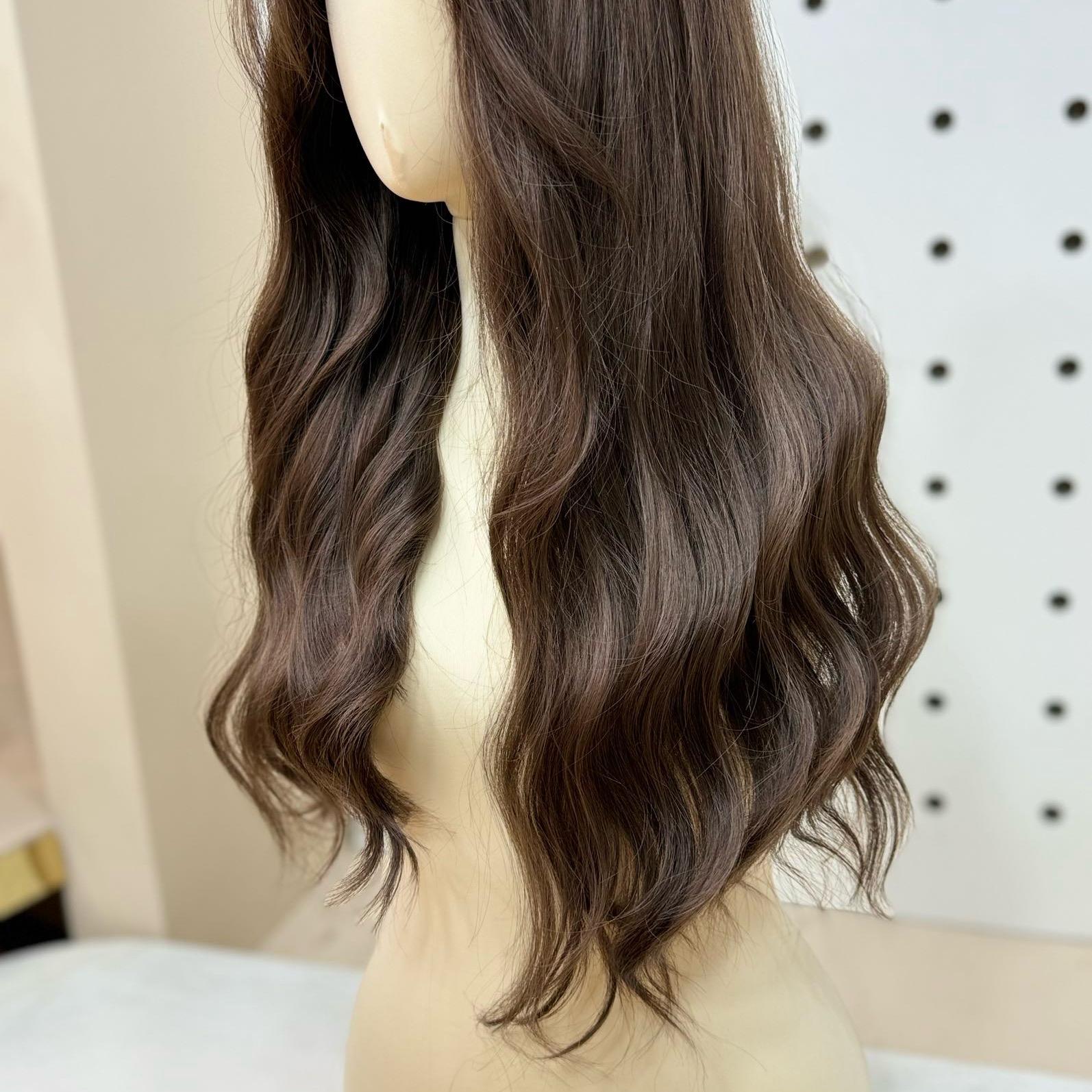 Cấu Trúc: Sợi Tóc được đan dệt vào da đầu theo tỉ lệ mô phỏng da đầu người. Phía trước được cắt tỉa tóc con tạo hiệu ứng cho tóc giả