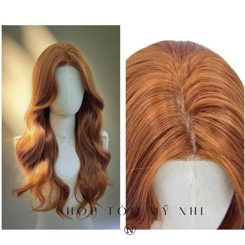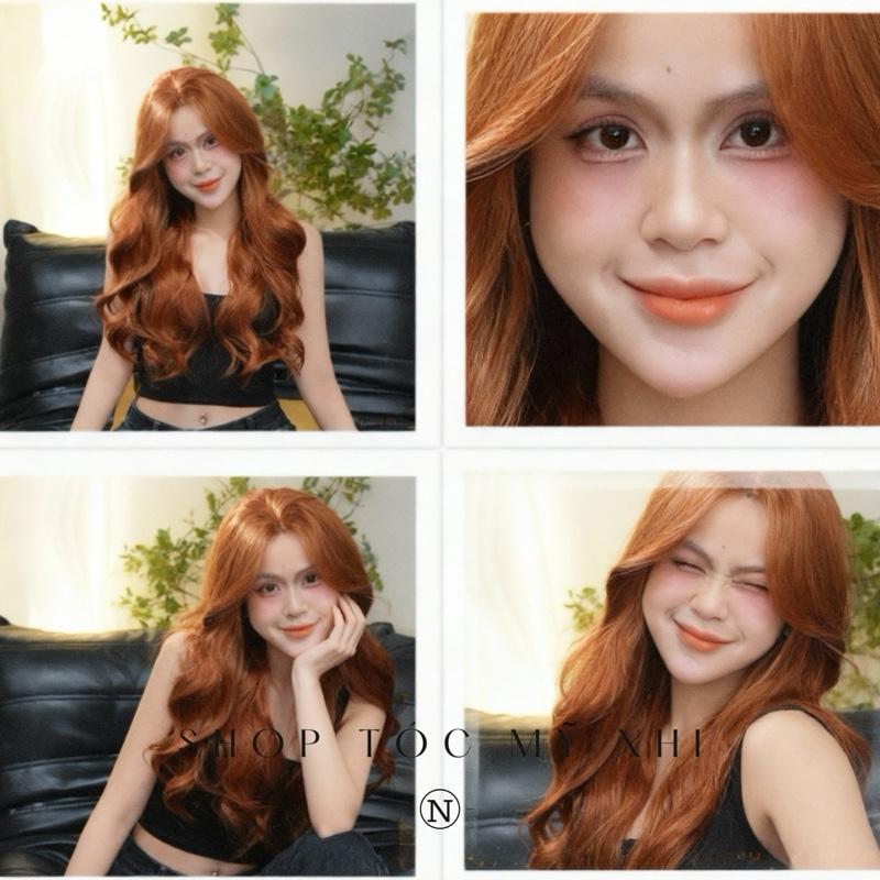 Tóc giả nguyên đầu xoăn layer hai mái màu nâu cam cháy là item must-have cho