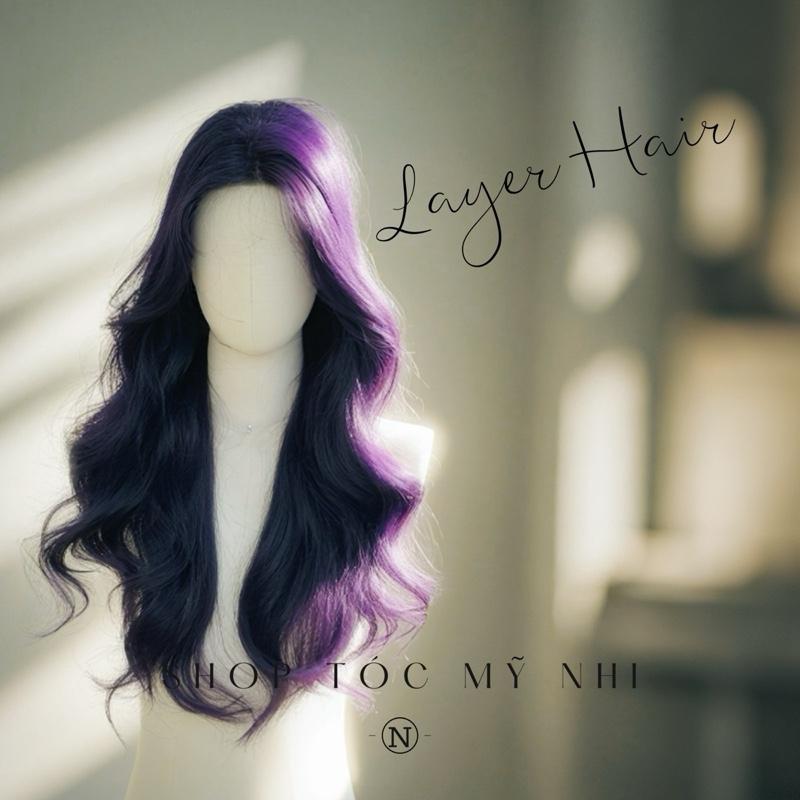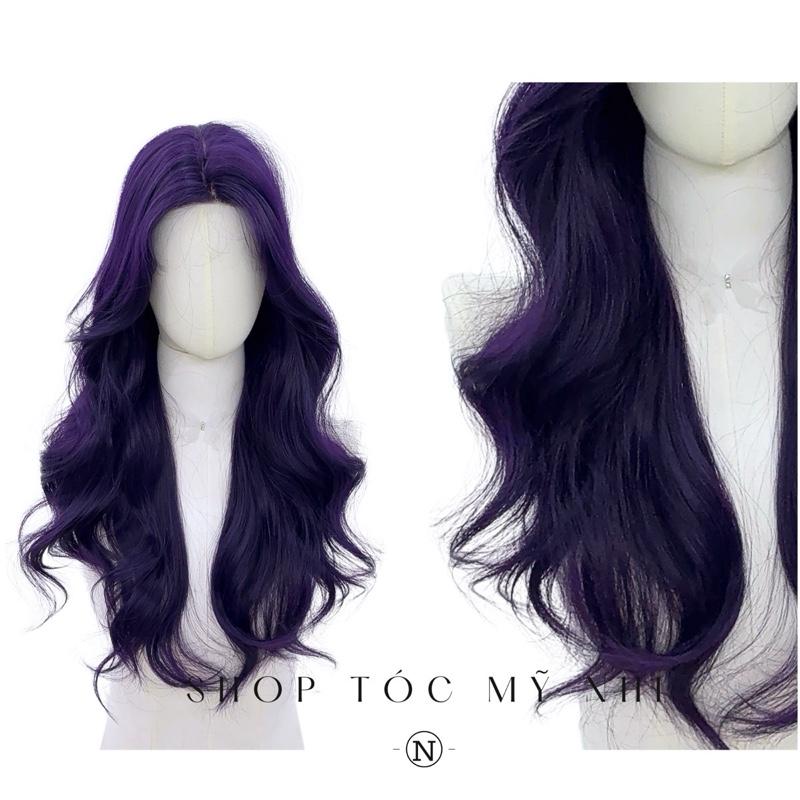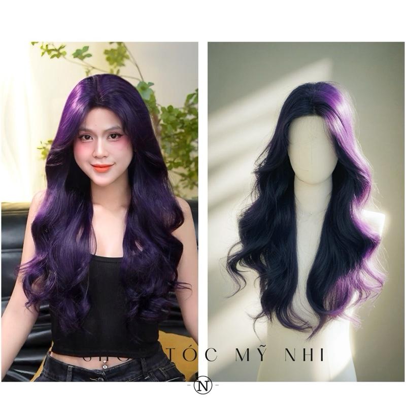 Tóc giả nguyên đầu xoăn layer hai mái màu tím than mang phong cách cá tính và